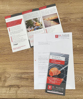 wurde von uns mit einem Mailing und speziellen Flyern begleitet. Auf der Baustelle konnten sich Anwohner vor Ort über die Leistungen im Bereich Photovoltaik informieren.